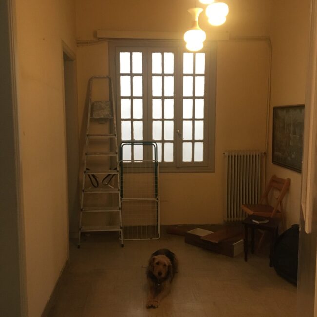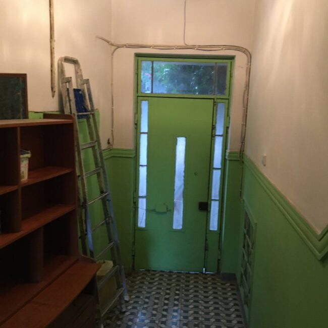 Διπλοκατοικία του 1937. Ο δεύτερος όροφος και το δώμα χρειάστηκαν ριζική ανακαίνιση, τόσο εσωτερικά όσο και εξωτερικά, ο πρώτος όροφος μερικές επεμβάσεις μικρής κλίμακας. Η δική μου συμβολή αφορούσε το αισθητικό κομμάτι, καθώς και προτάσεις εσωτερικής διαρρύθμισης.